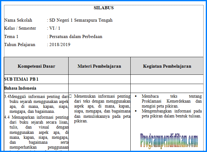 Itulah penjelasan singkat mengenai download contoh silabus kelas 6 k13 tapel 2020/2021 yang dapat admin jelaskan, semoga artikel.